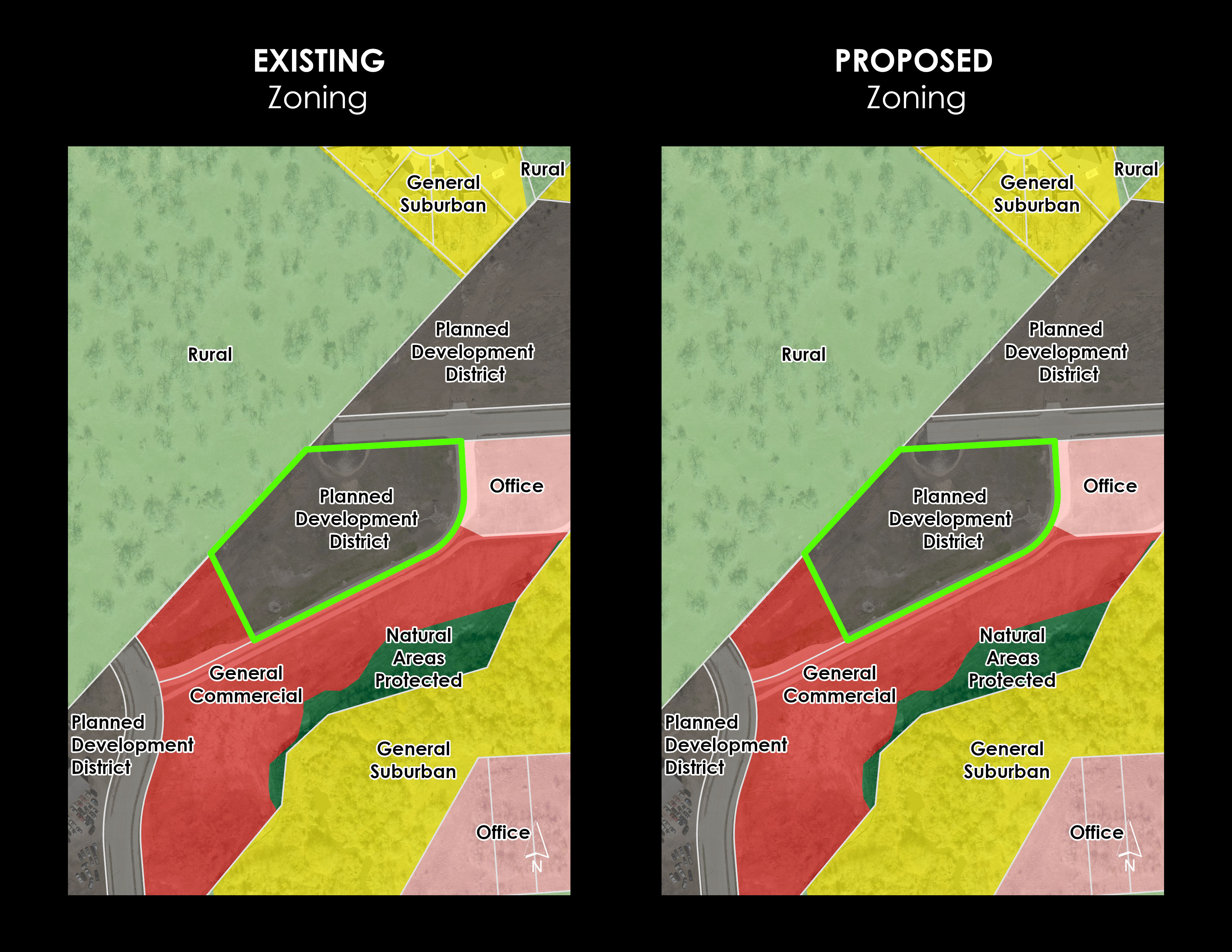 A rezoning request for approximately 2.6 acres of land located at the terminus of Castle Rock Parkway from PDD Planned Development District to PDD Planned Development District .