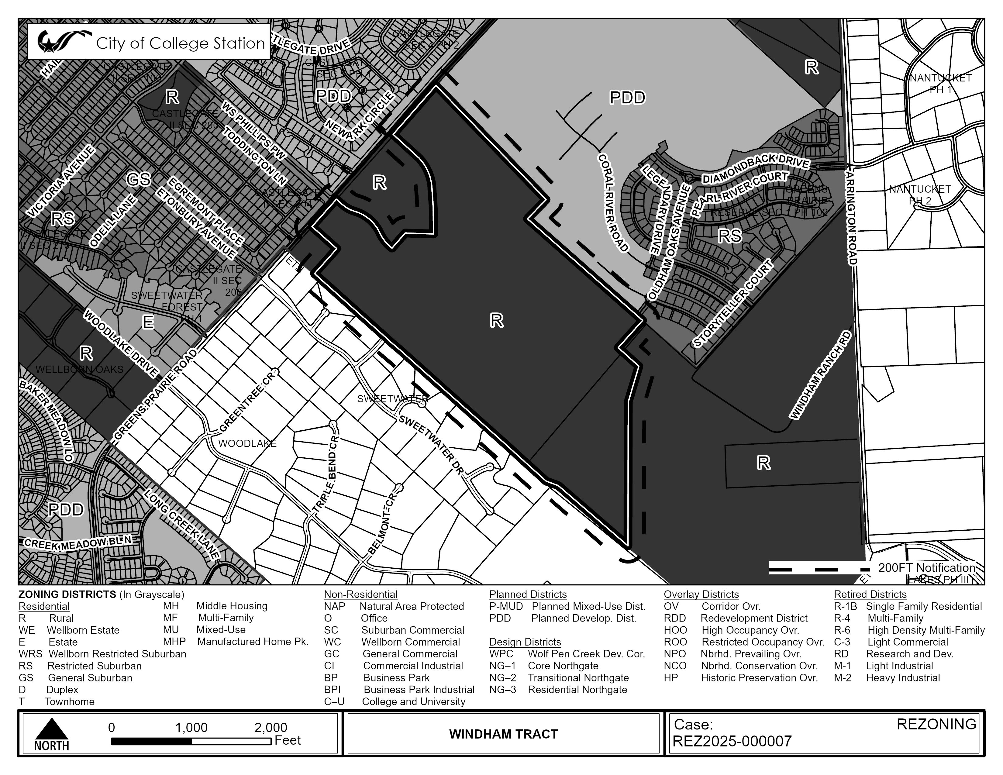 A rezoning request for approximately 238 acres of land generally located on Greens Prairie Road, east of the intersection of Greens Prairie Road and W.S. Phillips Parkway from R Rural to GS General Suburban.