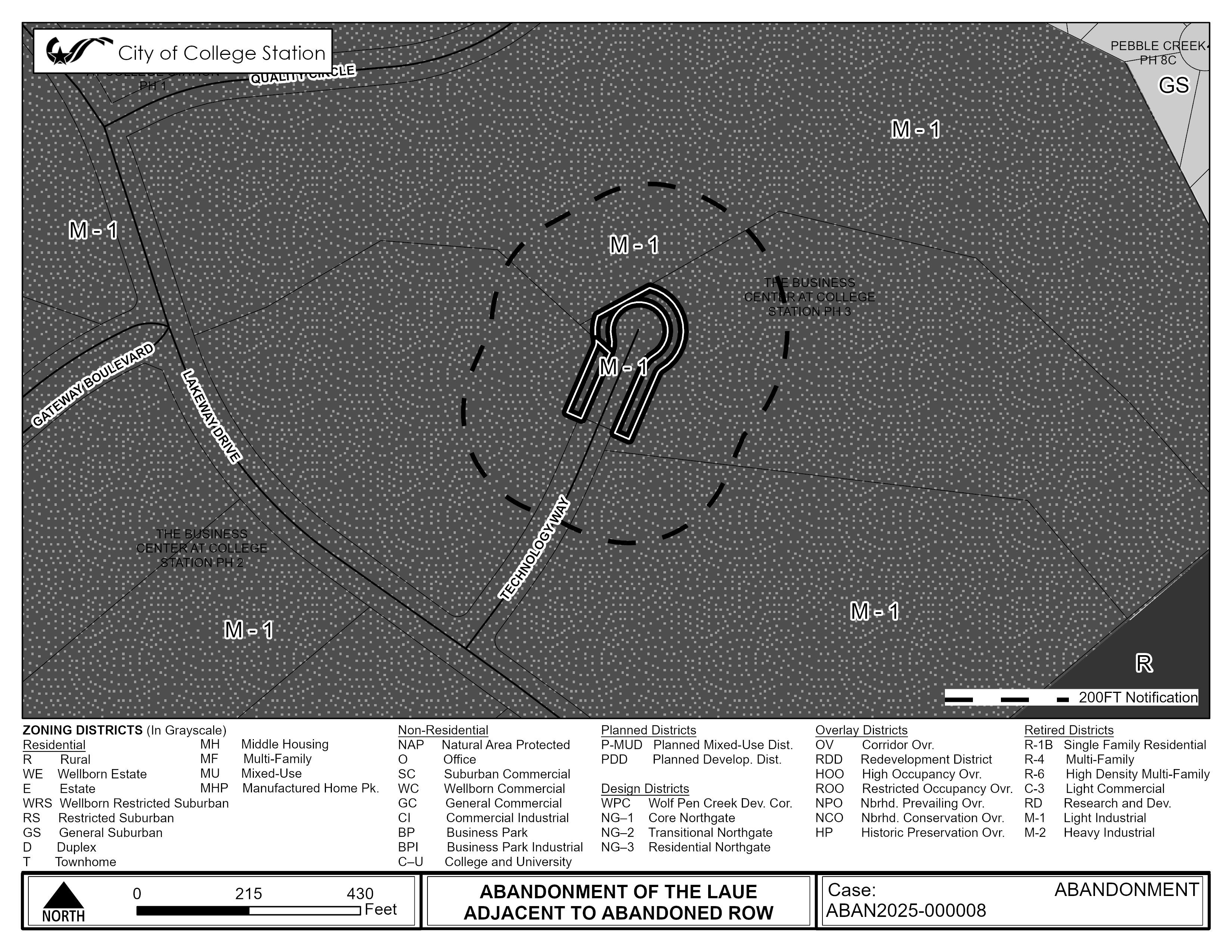 A request for the abandonment of a Landscape and Utility Easement and Landscape, Access, and Utility Easement located at 210 Technology Way.