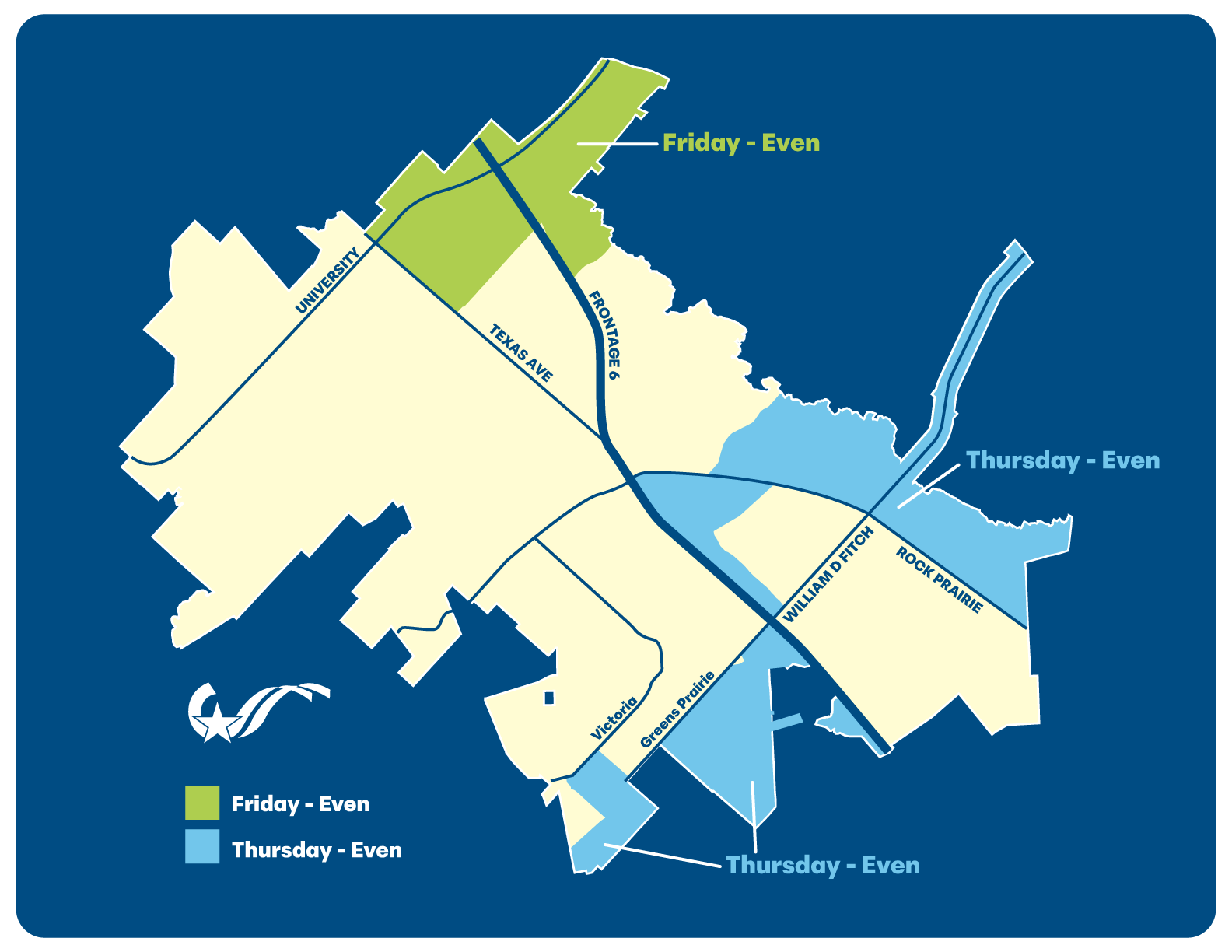 The City of College Station is updating recycling collection days for a limited number of residents to improve service efficiency and route balance. Between 5,000–6,000 households will be affected by the change. The adjustment helps balance collection routes, improve efficiency, and ensure reliable service.