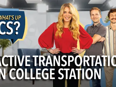 In this week’s episode of "What's Up, College Station?,” Jesse Dimeolo and Carl Ahrens from Planning and Development Services discuss the City’s ambitious Active Transportation Master Plan and break down how the City is balancing the needs of drivers, cyclists, and pedestrians.
